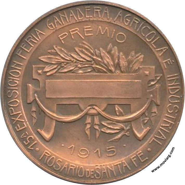 Anverso: SOCIEDAD RURAL DEL ROSARIO. Firma: CONST. ROSSI Reverso: 15A. EXPOSICION FERIA GANADERA, AGRÍCOLA É INDUSTRIAL / ROSARIO DE SANTA FE / PREMIO / 1915 Referencia: | |