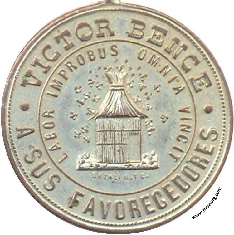 Anverso: VICTOR BENCE / A SUS FAVORECEDORES / LABOR IMPROBUS OMNIA VINCIT. Firma: ORZALI B. Y C. Reverso: RECUERDO DE LA INAUGURACION OFICIAL / DE LA / CERERIA / SAN MIGUEL / 8 DE MAYO 1895 / 818 PIEDAD 818 / BUENOS AIRES Referencia: BURZIO-3451 | |