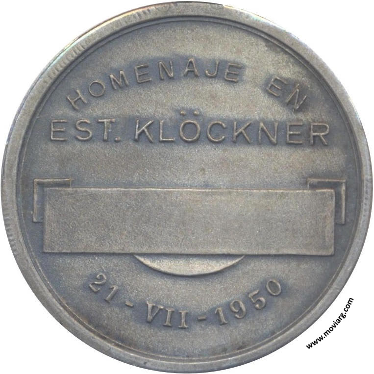 Anverso: 1950 AÑO DEL LIBERTADOR GENERAL SAN MARTIN Reverso: HOMENAJE EN / EST. KLÖCKNER / 21 - VII - 1950 Referencia: | |
