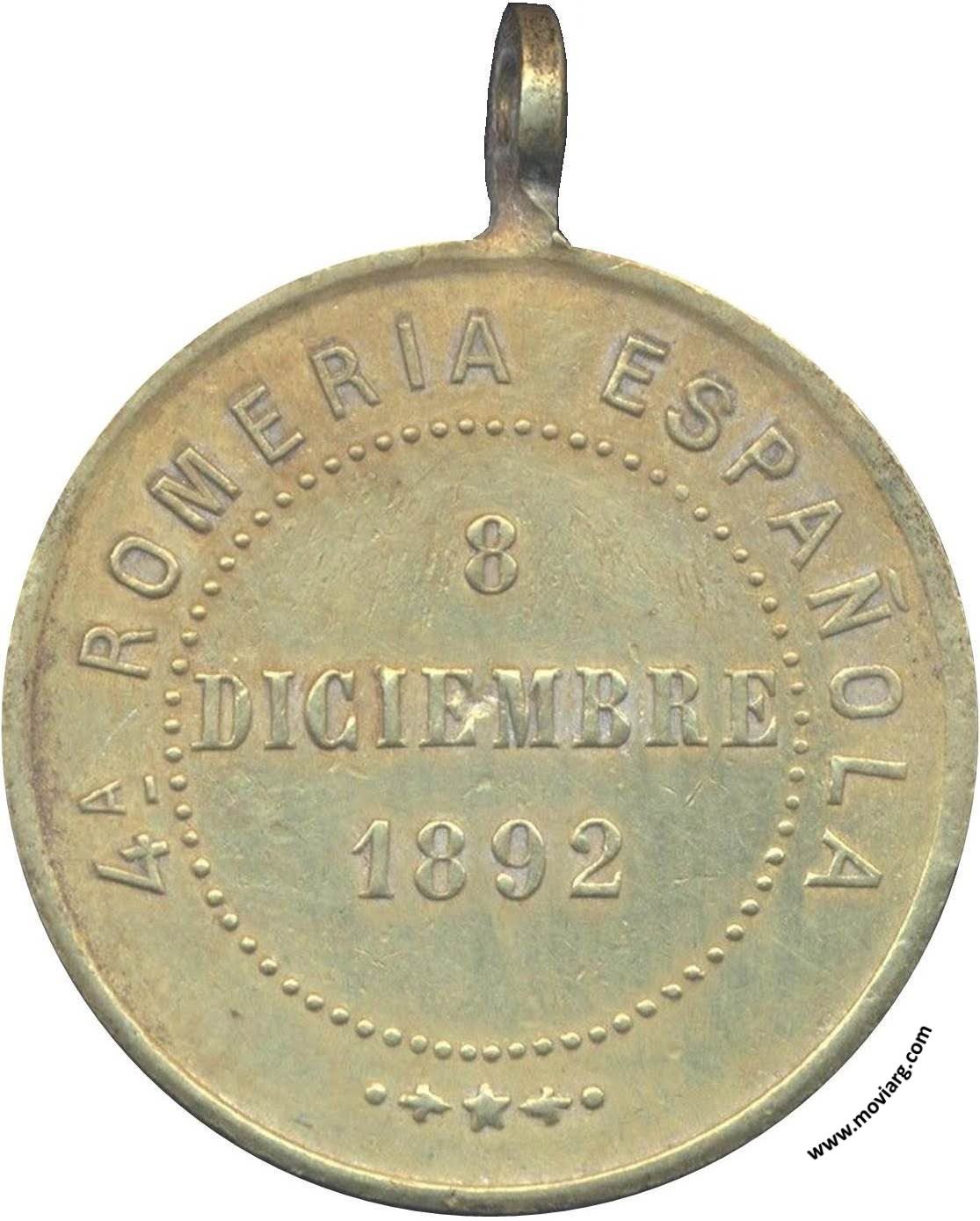 Anverso: ASOCIACION ESPAÑOLA DE S.M. / ROJAS Reverso: 4A. ROMERIA ESPAÑOLA / 8 / DICIEMBRE / 1892 Referencia: | |