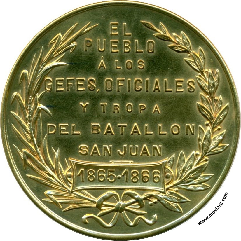 Numismática Cameroni Anverso: INAUGURACIÓN DEL NUEVO MONUMENTO Á LOS GUERREROS DEL PARAGUAY / 18 DE JULIO DE 1906 / SAN JUANReverso: EL / PUEBLO / Á LOS / GEFES, OFICIALES / Y TROPA / DEL BATALLON / SAN JUAN / 1865 · 1866 Referencia: | |