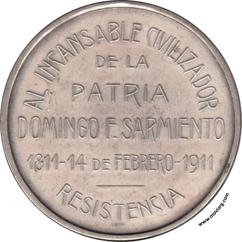 Colección Carlos Bravo Anverso:Reverso: AL INCANSABLE CIVILIZADOR / DE LA / PATRIA / DOMINGO F. SARMIENTO / 1811 - 14 DE FEBRERO - 1911 / RESISTENCIA. Firma: F. COSTA Referencia: | |