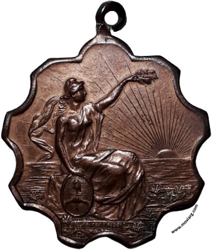 | Año: 1908 Otros Metal: Cobre - Peso: 8.12gr - Módulo: 29.19mm - Espesor: 1.93mm - Rotación: 12hrs Grabador: José Bellagamba y Constante Rossi | |