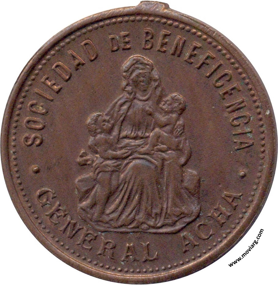 Anverso: SOCIEDAD DE BENEFICENCIA / GENERAL ACHA Reverso: IN MEMORIAM / VICTORIA THE GOOD / QUEEN OF GREAT BRITAIN / AND IRELAND / EMPRESS OF INDIA / 1837 - 1901 Referencia: | |