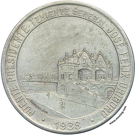 | Año: 1938 Obras y Servicios Públicos Metal: Plateado - Módulo: 30mm Grabador: Constante Rossi | |