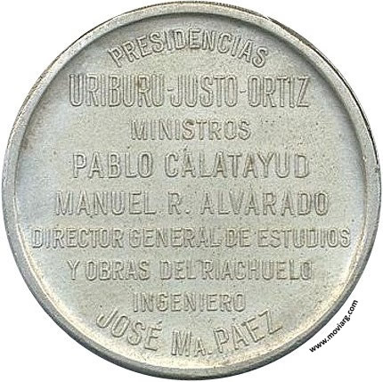rosfil1 Anverso: PUENTE PRESIDENTE TENIENTE GENERAL JOSE FELIX URIBURU / 1938. Firma: CONSTANTE ROSSIReverso: PRESIDENCIAS / URIBURU - JUSTO - ORTIZ / MINISTROS / PABLO CALATAYUD / MANUEL R. ALVARADO / DIRECTOR GENERAL DE ESTUDIOS / Y OBRAS DEL RIACHUELO / INGENIERO / JOSÉ MA. PÁEZ Referencia: | |
