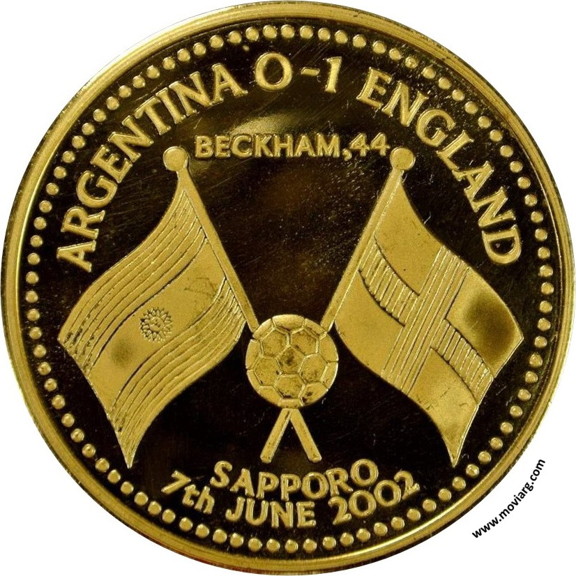 Anverso: ARGENTINA 0 - 1 ENGLAND / BECKHAM, 44 / SAPPORO / 7TH JUNE 2002 Reverso: SVEN GORAN ERIKSSON / " WE DEFENDED FOR OUR LIVES AND WITH BIG, BIG HEARTS " Referencia: | |