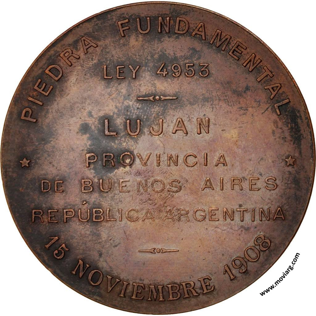 Anverso: ASILO COLONIA REGIONAL / DE / RETARDADOS. Firma: HORTA Y CIA. Reverso: PIEDRA FUNDAMENTAL / LEY 4953 / LUJAN / PROVINCIA / DE BUENOS AIRES / REPÚBLICA ARGENTINA / 15 NOVIEMBRE 1908 Referencia: | |