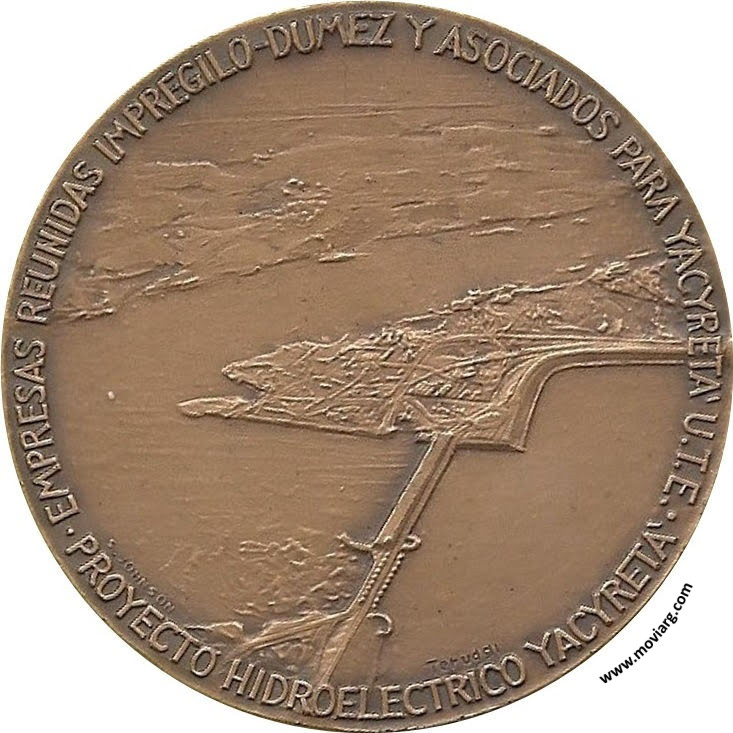 Anverso: 1983 - REPUBLICA ARGENTINA - REPUBLICA DEL PARAGUAY 1994 / EBY - ENTIDAD BINACIONAL YACYRETA Reverso: EMPRESAS REUNIDAS IMPREGILO - DUMEZ Y ASOCIADOS PARA YACYRETA U.T.E. / PROYECTO HIDROELECTRICO YACYRETA. Firma: S. JOHNSON / TERUCCI Referencia: | |