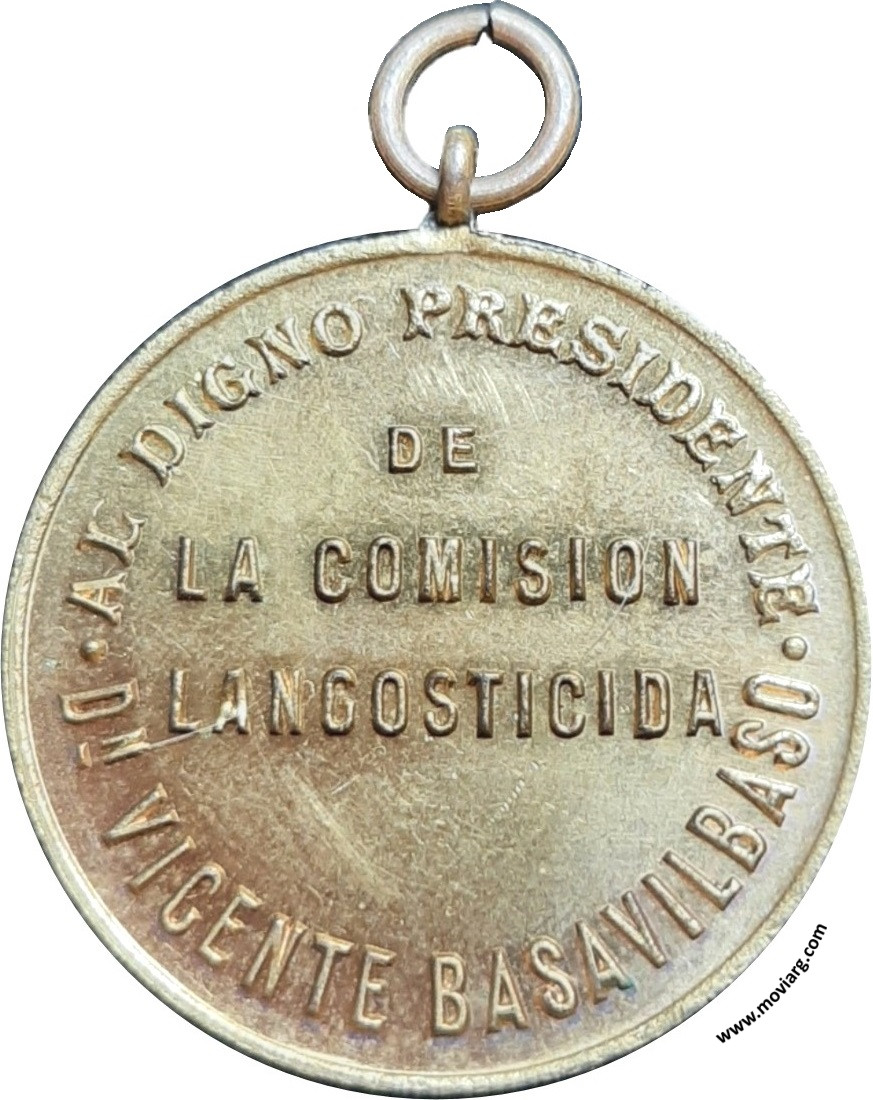 Anverso: AL DIGNO PRESIDENTE / DE / LA COMISION / LANGOSTICIDA / DN. VICENTE BASAVILBASO Reverso: LOS AGRICULTORES DE SAN PEDRO / GOROSTARZU / LARRONDO / ZAVALETA / MAYO 25 - 1897 Referencia: | |