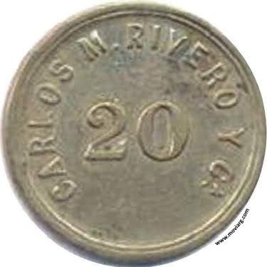 Anverso: CARLOS M. RIVERO Y CA. / 20 Reverso: Referencia: | |