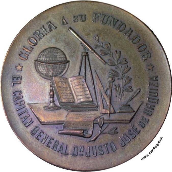 Anverso: GLORIA Á SU FUNDADOR / EL CAPITAN GENERAL DN. JUSTO JOSÉ DE URQUIZA Reverso: COLEGIO NACIONAL DEL URUGUAY / 1849 - 28 DE JULIO - 1899 / MEDIO SIGLO / DE / GLORIA / EDUCACIONAL. Firma: B. Y R. Referencia: | |