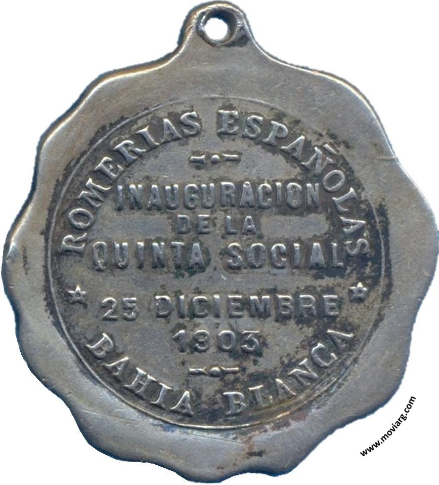 Anverso: Firma: CASANOVAS Y HORTA Reverso: ROMERIAS ESPAÑOLAS / INAUGURACION / DE LA / QUINTA SOCIAL / 25 DICIEMBRE / 1903 / BAHIA BLANCA Referencia: | |