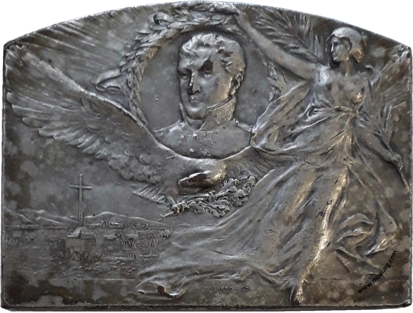 | Año: 1913 Aniversarios Metal: Plateado - Peso: 121.86gr - Módulo: 53.69x71.18mm - Espesor: 3.3mm - Rotación: 12hrs Grabador: Juan Gottuzzo y Ca. | |