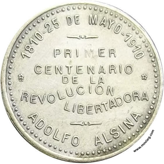 Anverso: OID / MORTALES / EL GRITO / SAGRADO... Reverso: 1810 - 25 DE MAYO - 1910 / PRIMER / CENTENARIO / DE LA / REVOLUCION / LIBERTADORA / ADOLFO ALSINA Referencia: | |