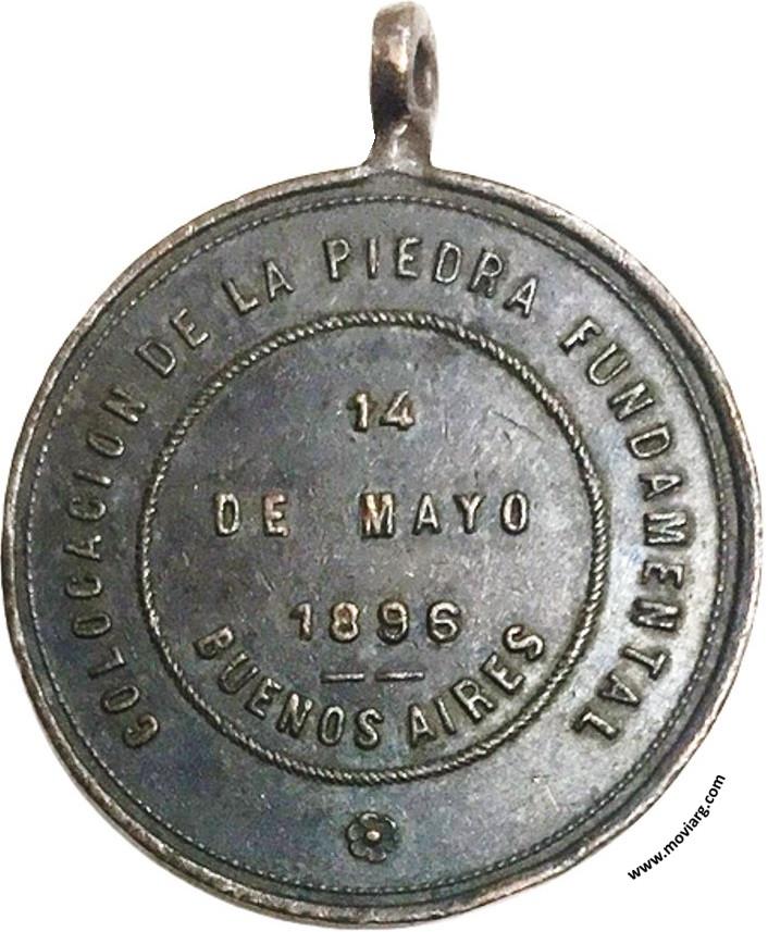 Anverso: IGLESIA DE NA. SA. DEL ROSARIO DE POMPEYA / PATRONO MENOR S. ANTONIO DE PADUA. Firma: ORZALI B. Y C. Reverso: COLOCACION DE LA PIEDRA FUNDAMENTAL / 14 / DE MAYO / 1896 / BUENOS AIRES Referencia: | |