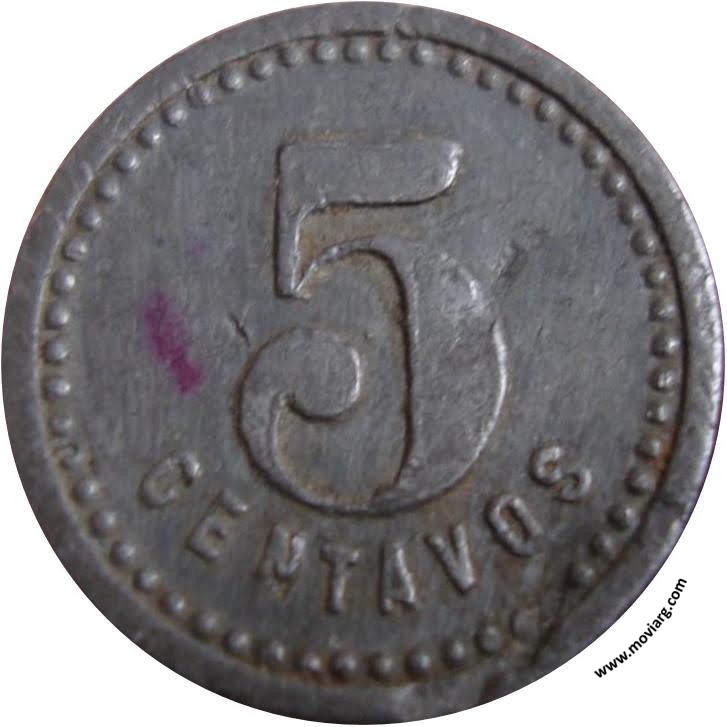 Anverso: PABELLON ARGENTINO / EMPRESA / JUAN WALDORF / & CIA. Reverso: 5 / CENTAVOS Referencia: | |