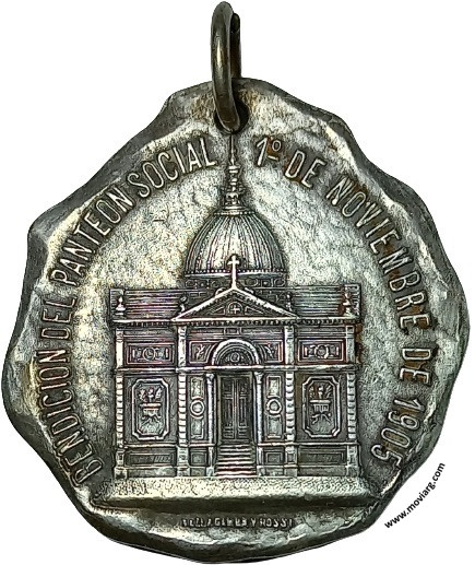 Anverso: BENDICION DEL PANTEON SOCIAL 1° DE NOVIEMBRE DE 1905. Firma: BELLAGAMBA Y ROSSI Reverso: SOCIEDAD ARGENTINA DE SOCORROS MUTUOS / AVELLANEDA. Firma: BELLAGAMBA Y ROSSI Referencia: | |