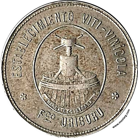 Anverso: ESTABLECIMIENTO VITI-VINÍCOLA / FCO. URIBURU. Firma: MARCA REGISTRADA Reverso: 50 / CAJONES. Firma: BELLAGAMBA Y ROSSI Referencia: | |