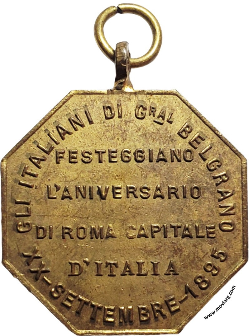 Anverso: Reverso: GLI ITALIANI DI GRAL. BELGRANO / FESTEGGIANO / L' ANIVERSARIO / DI ROMA CAPITALE / D' ITALIA / XX - SETTEMBRE - 1895 Referencia: | |