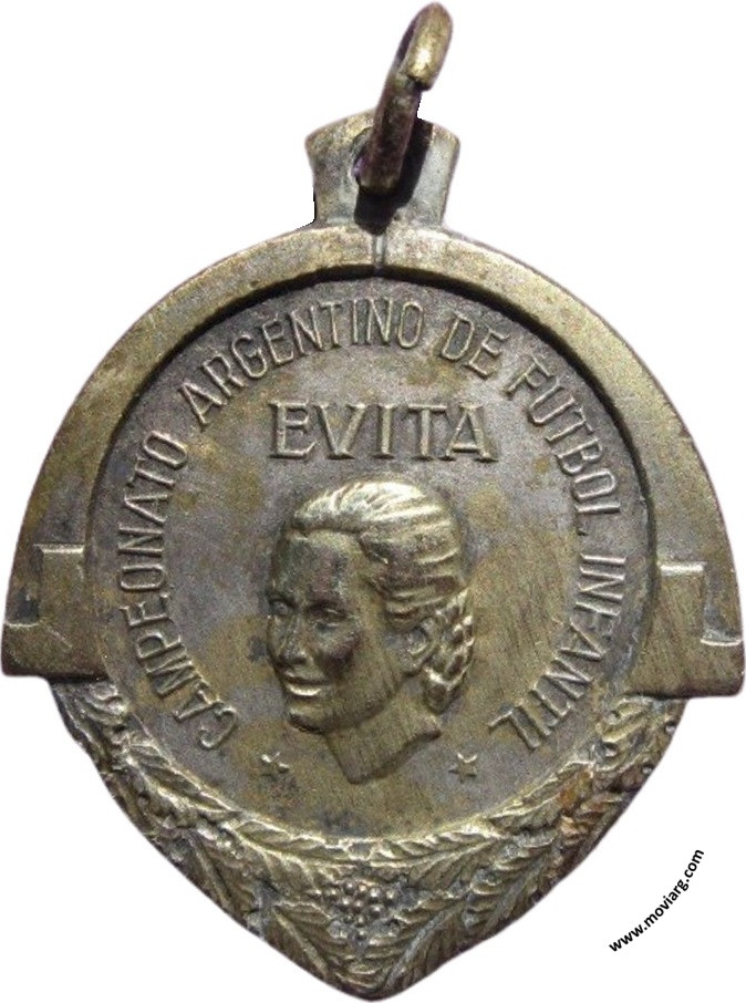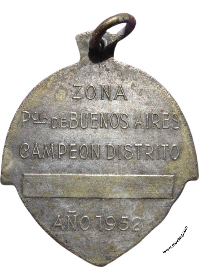 Anverso: CAMPEONATO ARGENTINO DE FUTBOL INFANTIL / EVITA Reverso: ZONA / PCIA. DE BUENOS AIRES / CAMPEON DISTRITO / AÑO 1952 Referencia: | |