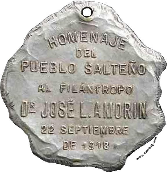 Anverso: Firma: CONSTANTE ROSSI Reverso: HOMENAJE / DEL / PUEBLO SALTEÑO / AL FILÁNTROPO / DR. JOSÉ L. AMORIN / 22 SEPTIEMBRE / DE 1918 Referencia: | |