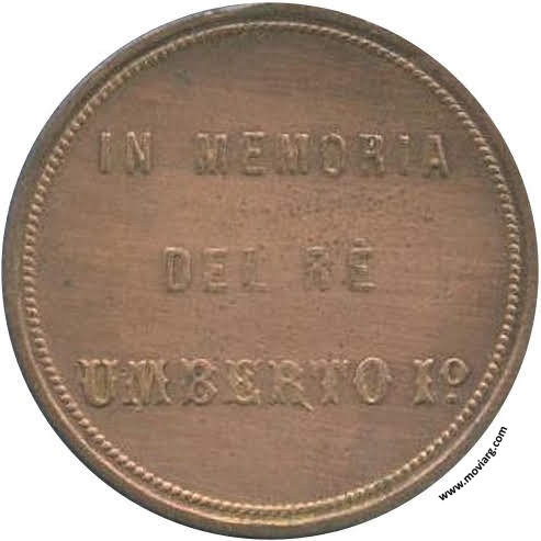 Anverso: 29 DI LUGLIO / 1900. Firma: BELLAGAMBA Y ROSSI Reverso: IN MEMORIA / DEL RE / UMBERTO I° Referencia: | |