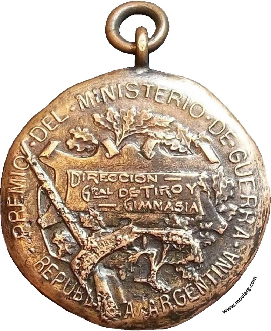 Anverso: Reverso: PREMIO DEL MINISTERIO DE GUERRA / REPUBLICA ARGENTINA / DIRECCION / GRAL. DE TIRO Y / GIMNASIA. Firma: BELLAGAMBA / Y ROSSI Referencia: | |