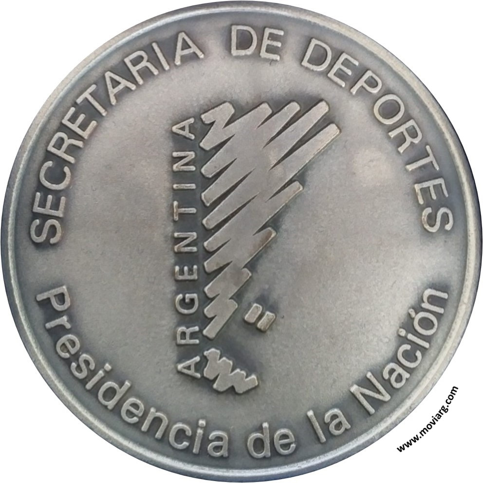 Anverso: SECRETARIA DE DEPORTES / PRESIDENCIA DE LA NACION / ARGENTINA Reverso: EN AGRADECIMIENTO / POR SU PARTICIPACION / EN LOS / XII JUEGOS DEPORTIVOS / PANAMERICANOS / MAR DEL PLATA 1995 Referencia: | |
