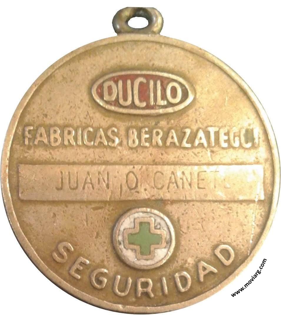 Anverso: DUCILO / FABRICAS BERAZATEGUI / [ JUAN O. CANET ] / SEGURIDAD Reverso: RECONOCIMIENTO / POR / 10.000.000 DE HORAS / TRABAJADAS / SIN LESION / MAYOR / 10 - 5 - 71 Referencia: | |