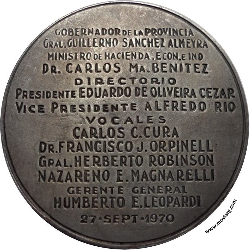 Anverso: EL BANCO PROVINCIAL DE S. FE A CARLOS CASADO DEL ALISAL. Exergo [ 5 / 50 ] Reverso: GOBERNADOR DE LA PROVINCIA / GRAL. GUILLERMO SANCHEZ ALMEYRA / MINISTERIO DE HACIENDA. ECON. E IND. / DR. CARLOS MA. BENITEZ / DIRECTORIO / PRESIDENTE EDUARDO DE OLIVEIRA CEZAR / VICE PRESIDENTE ALFREDO RIO / VOCALES / CARLOS C. CURA / DR. FRANCISCO J. ORPINELL / GRAL. HERBERTO ROBINSON / NAZARENO E. MAGNARELLI / GERENTE GENERAL / HUMBERTO E. LEOPARDI / 27 · SEPT · 1970 Canto: Liso Referencia: | |