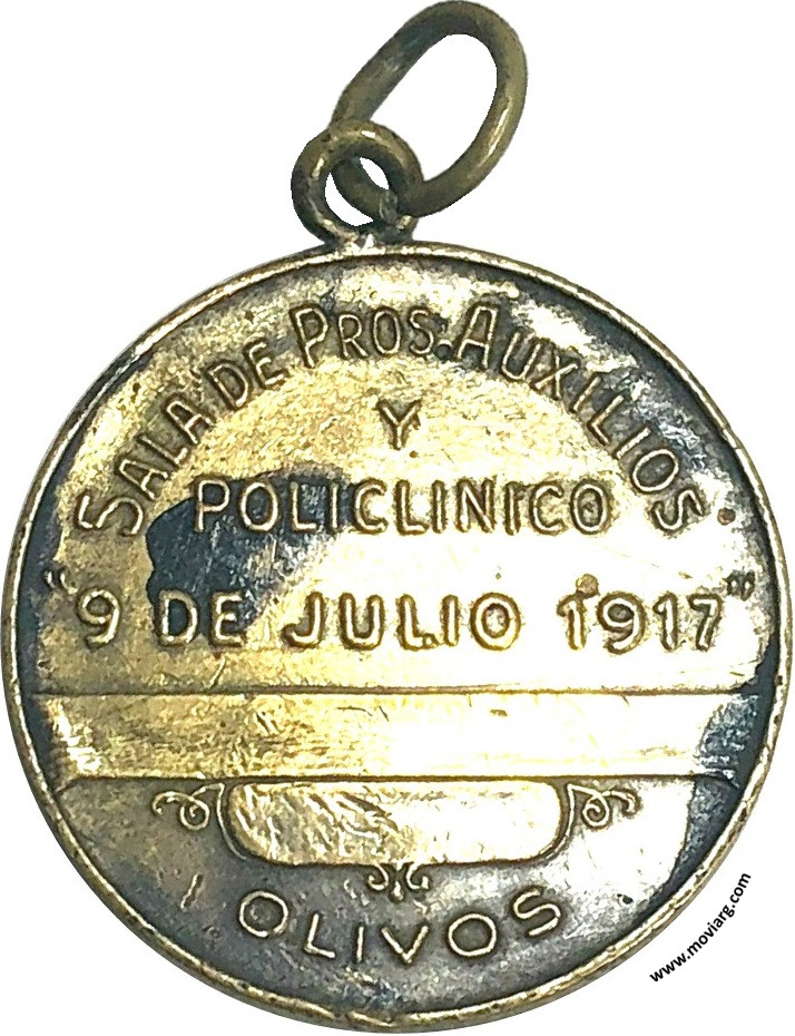 Anverso: Reverso: SALA DE PROS. AUXILIOS / Y / POLICLINICO / " 9 DE JULIO 1917 " / OLIVOS Referencia: | |