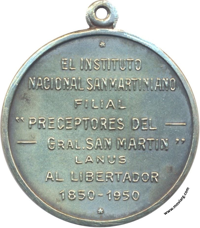 Anverso: Firma: SUC. J. F. PIANA / (???) Reverso: EL INSTITUTO / NACIONAL SANMARTINIANO / FILIAL / " PRECEPTORES DEL / GRAL. SAN MARTIN " / LANUS / AL LIBERTADOR / 1850 - 1950 Referencia: | |