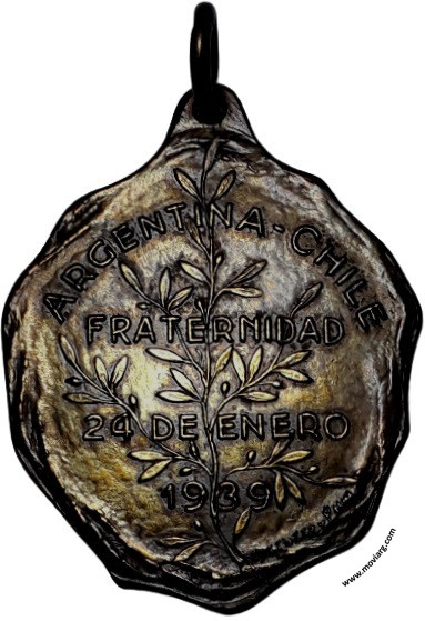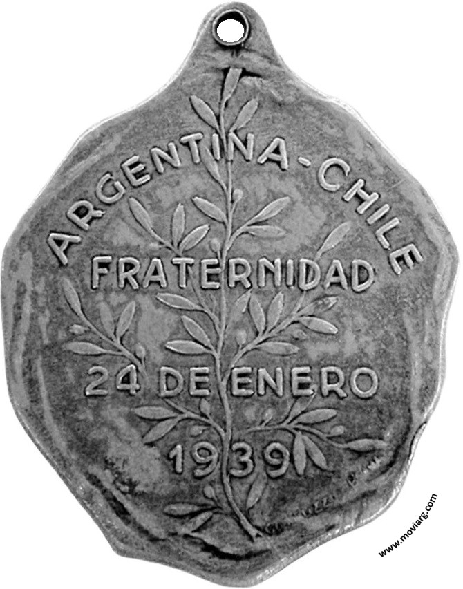 Anverso: CHILLAN... Reverso: ARGENTINA - CHILE / FRATERNIDAD / 24 DE ENERO / 1939. Firma: GOTTUZZO Y PIANA Referencia: | |