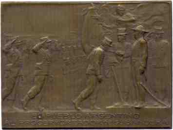 Anverso: AL BENEMERITO CUERPO / DE / BOMBEROS / DE LA CAPITAL / LA SOC. AN. BOLSALONA / AGRADECIDA Reverso: AL VALOR SACRIFICIO Y ABNEGACION / INCENDIO / SOC. AMA. / BOLSALONA / GALLO 1911 Y / AGUERO 1814-68 / 27 SETIEMBTE 1920. Firma: GOTTUZZO / Y PIANA