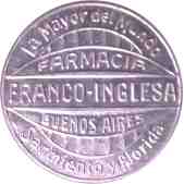 Anverso: LA MAYOR DEL MUNDO / FARMACIA / FRANCO-INGLESA / BUENOS AIRES / SARMIENTO Y FLORIDA Reverso: (Sello postal - 1 Centavo)