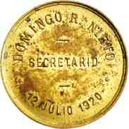 Anverso: CLUB SOCIAL NOGOYÁ. Firma: CONST. ROSSI Reverso: FUNDADO / EL / 9 DE AGOSTO / DE 1920