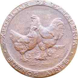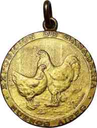 Anverso: PROV. DE BUENOS AIRES / ASOCIACION / DE / AVICULTORES. Firma: VANZO Y GALLO Reverso: EXPOSICION / DE / AVICULTURA / II PREMIO / 1920