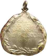 Anverso: DEBER / CUMPLIDO / G.C.N. (Gran Colecta Nacional) Reverso: GRAN / COLECTA / NACIONAL / PRO PAZ SOCIAL / 1920. Firma: GOTTUZZO / Y PIANA