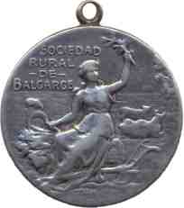 Anverso: EXPOSICIÓN DE GANADERIA / BUENOS AIRES. Firma: J. M. LUBARY Reverso: PREMIO SOCIEDAD RURAL ARGENTINA / BUENOS AIRES